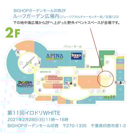 場所:BIGHOPガーデンモール印西2Fルーフガーデン広場内(ジュージアカルチャーセンター様前)