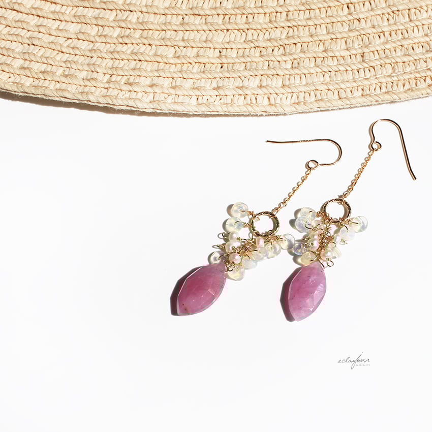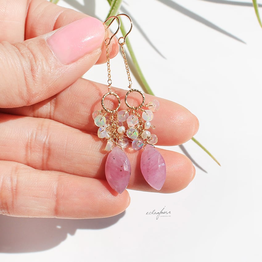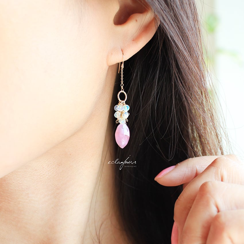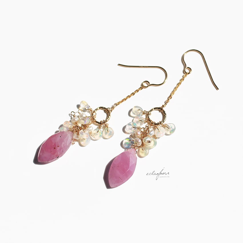 フェミニンで柔らかく、優しい印象を持つこのピンクサファイヤのピアス&イヤリング。
