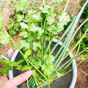 そして、夜は菜園で採れたパクチーとおネギで、ヤムウンセン(タイ風サラダ)とお雑炊を作りました。