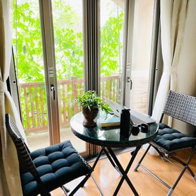 実はこの椅子とテーブル、コロナが始まった昨年のGWにマンションのベランダ用に購入したもの。