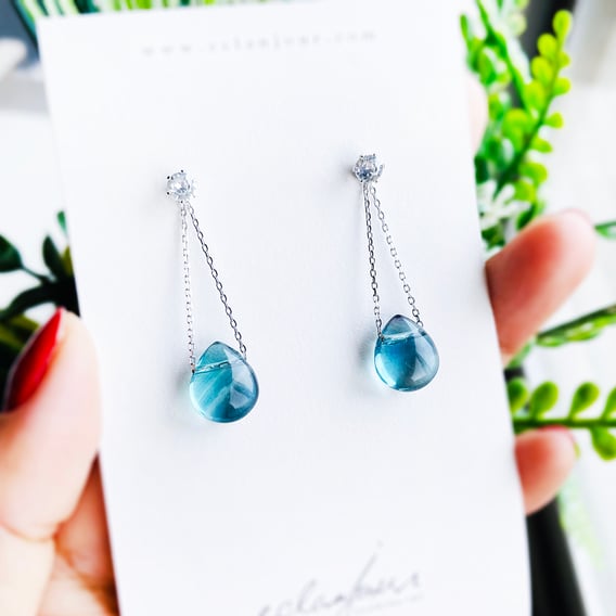 2wayピアス☆フローライトのドロップピアス[ブルーグリーン]【eclanjour】