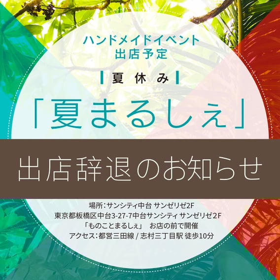 『夏まるしえ』イベント出店を辞退させていただきます。