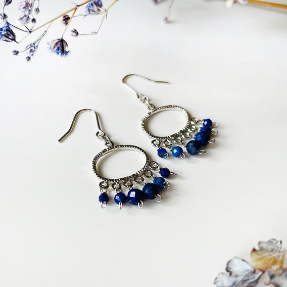 ラピスラズリを使用したシンプルで上品なピアス。