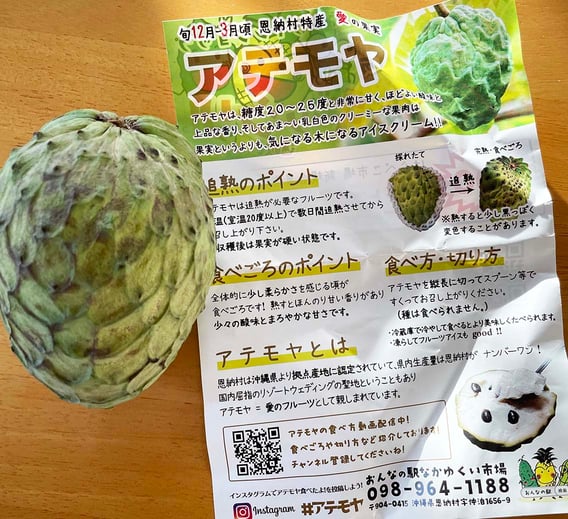 世界三大美果のひとつであるチェリモヤとバンレイシ(釈迦頭)を掛け合わせて できた亜熱帯果樹です。 名前は、バンレイシのブラジル名でるアテスの「アテ」とチェリモヤの「モヤ」の合成語です。