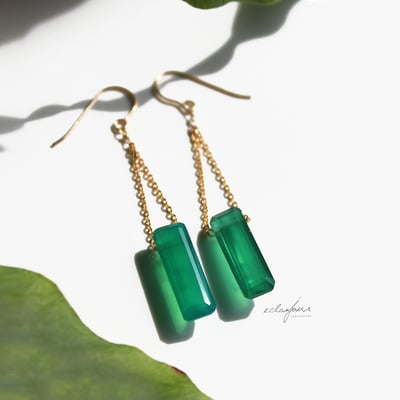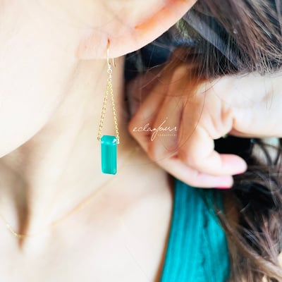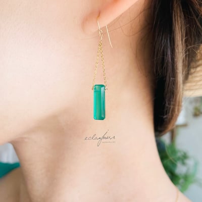 こちらレクタングルファセットカットのオニキスを使ったピアス。