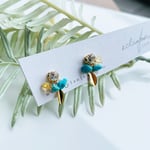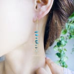 作品はターコイズを使用したロングピアスと、ターコイズ×シトリンの2wayピアスです。2wayピアスはシンプルでオシャレな一粒ダイヤ(ガラス製)とターコイズ部分が脱着可能なピアスです。シーンで使い分けしてくださいね😊