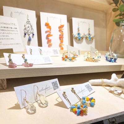 左上のターコイズのロングピアスと右下の2WAYピアスは海展用ですので、