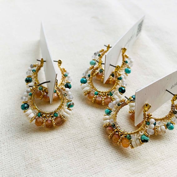 人気のボヘミアンブラウンフープピアス、在庫薄で本日追加で製作。