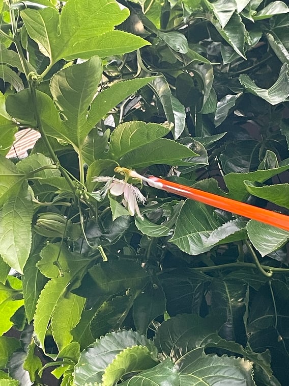 因みに手の届かない花は、棒の先に綿棒をセロハンで留めて、遠隔受粉(笑)