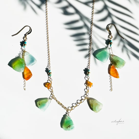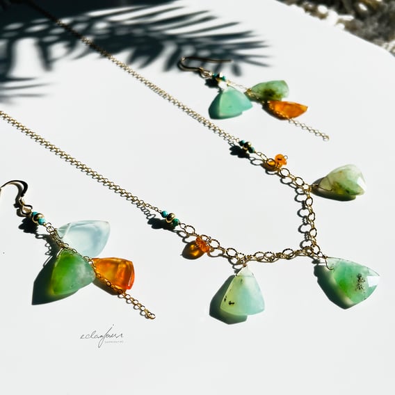 さてはて、クリソプレーズのネックレスとピアスSNSにアップしたのですが意外と反響があり、