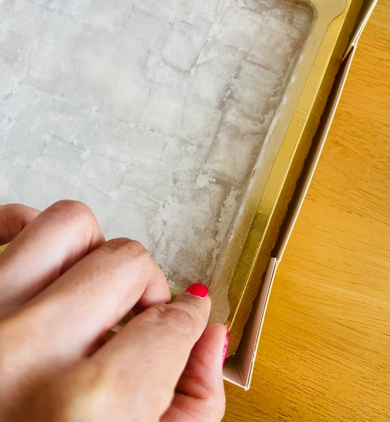箱をあけると、さらに透明な蓋があり、白い粉砂糖がぱらぱら。