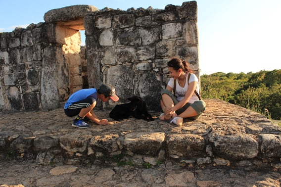 遺跡巡り・・地元の子供と野良犬で意気投合。