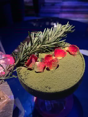 いつもこのバーでお世話になっているバーテンさんの日本酒と抹茶を使用したオリジナルのカクテル。