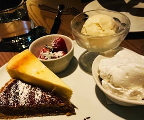 デザートは、チーズケーキと、ピーカンパイ、アイスクリーム、苺、