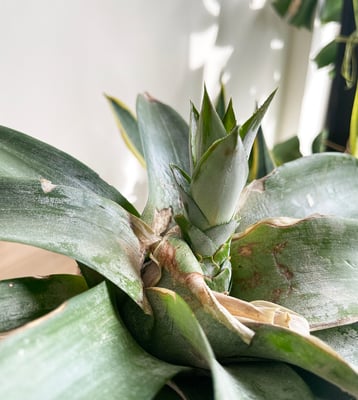 周りの古い葉っぱはそのうち剥けて新しい葉っぱに置きかわるのかもしれません。