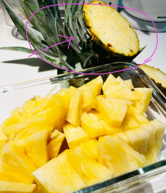 そして、写真の赤で囲ったパイナップルのヘタ部分。