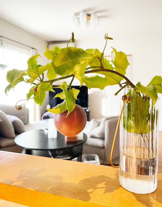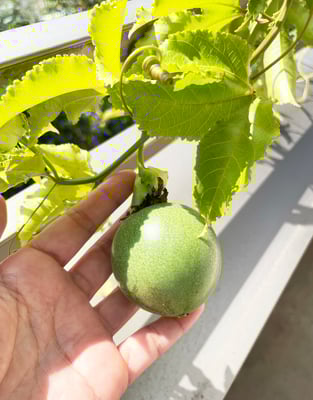 そして、ベランダにいた青いパッションフルーツは、頑張って結実したのにただ捨てるのも忍びなかったので、