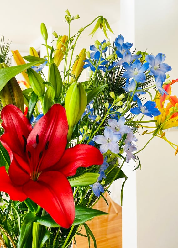 写真のお花は毎年近くの花屋でテキトーに買ってくる我が家の正月用の花です。