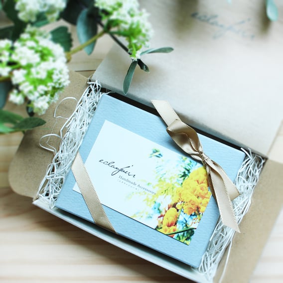 今までラッピングという形で承っておらず、こちらでキレイにオーガンジーの巾着に入れたりして作品のイメージやその日の気分でラッピングして発送させて頂いていたのですが、