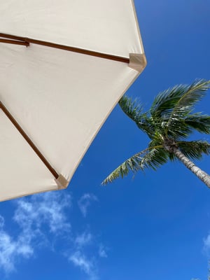 ビーチチェアでのんびり横になって、波の音と、青い空を眺めるだけでリラックス♡