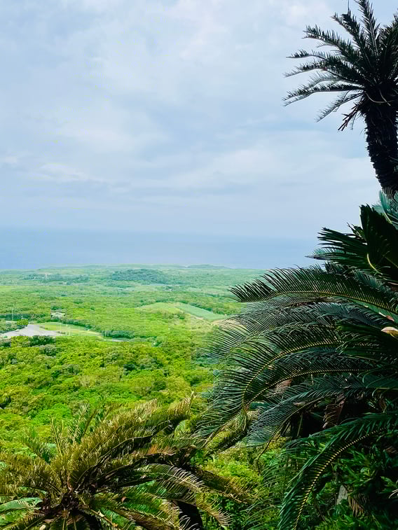 頂上の展望台から。辺戸岬の方向を見る。気持ち良すぎた。