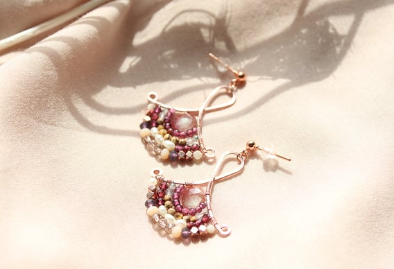 〈PinkGold〉ロゼピンクのエヴァンタイユピアス&イヤリング