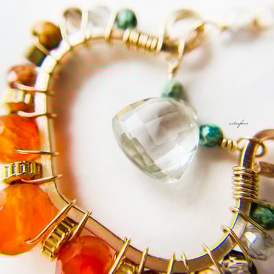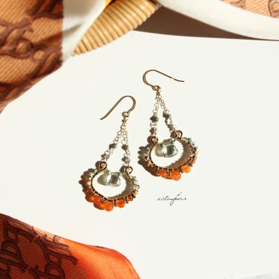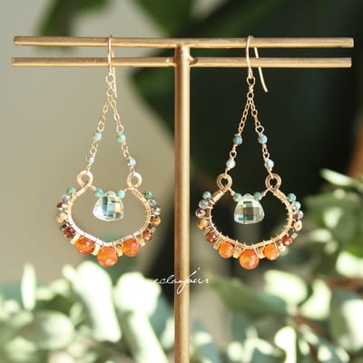 カーネリアンの「赤」を使ってちょっとエキゾチックに、でも中央のグリーンクオーツのカットがとても上品で美しいので、なんだかとっても素敵な仕上がりになりました←自画自賛。