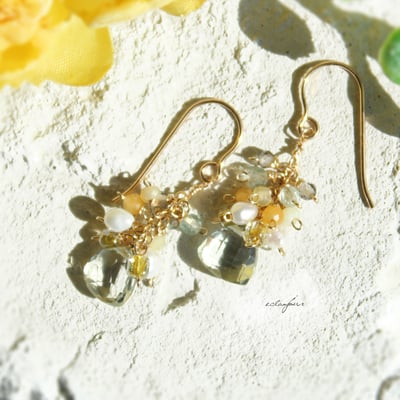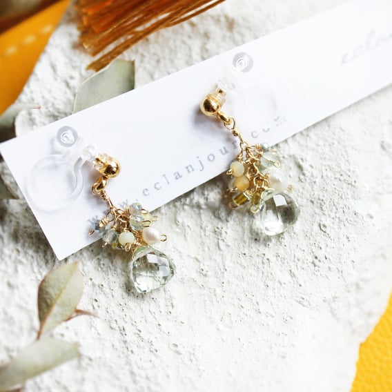 14kgf/yellow〜グリーンクォーツミニピアス&イヤリング【eclanjour】