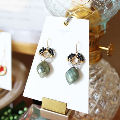 ↓↓↓↓↓↓こちらのラブラドライトのピアスは、HMJ2025で初お目見えのできたてほやほやです。